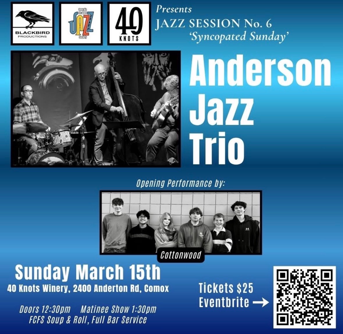 I have also teamed up with vocalist Mel McCutcheon as part of the quintet Vintage Velvet (see link at bottom of page). With her great vocal skills and positive energy, the two of us also perform as Anderson Jazz Duo, and as the Trio with John Hyde on bass. We recently performed at 40 Knots Winery (with guest Paul Nuez on trombone) which was hosted by the Georgia Straight Jazz Society (see GJJS link below). I expect a quartet is coming soon...